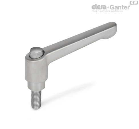 Nastavljive vpenjalne ročice GN 300.5 se uporabljajo, kadar je območje vpenjanja omejeno ali je potreben določen položaj vpenjanja. Navojni vložek je z ročajem ločljivo povezan z ozobljenim nastavkom.