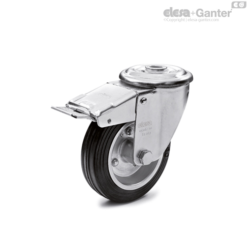 Ohišje iz pocinkane jeklene pločevine je zasnovano za nosilnost do 2300 N. Dvojni kroglični ležaj in neposredni stik med ploščo in držalom krogličnega ležaja z vgrajenim čepom zagotavljata odlično okretnost. Ne zahteva vzdrževanja.