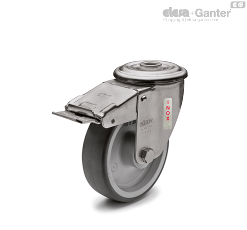 Popolna zavora, ki blokira kolo in vrtenje ohišja. Optimizirane dimenzije in uvlačljivi pedal zagotavljata najmanjšo porabo prostora in kar najlažjo aktivacijo. Hardened carbon steel or stainless steel (SST version) spring.