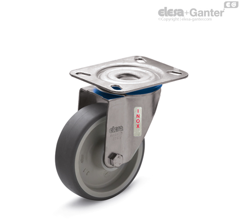 Pločevina iz plemenitega jekla AISI 304, nosilec je zasnovan za obremenitve do 1800 N. The presence of two ball turns and the direct contact between the plate and the ball race ring with built-in pin ensure excellent manoeuvrability. Ne zahteva vzdrževanja.