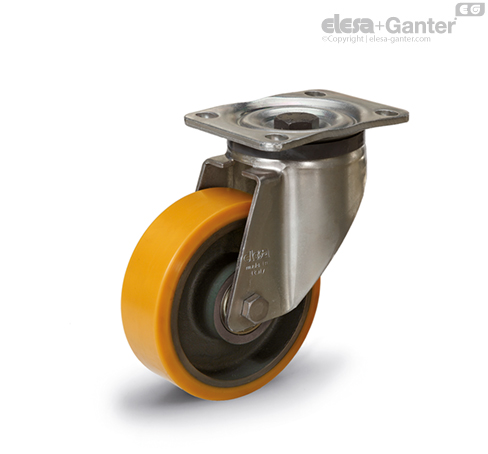 Primerno za težke industrijske aplikacije. Oblika poliuretanskih koles zagotavlja odlično drsnost in elastičnost ter visoko odpornost proti obrabi in trganju. Za več informacij glejte RE.F4.