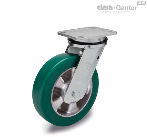 Primerno za težke industrijske aplikacije pod težkimi delovnimi pogoji, kot so bočni udarci in visoke hitrosti. Oblika poliuretanskih koles zagotavlja odlično drsnost in elastičnost ter visoko odpornost proti obrabi in trganju. Za dodatne informacije glejte RE.F2.