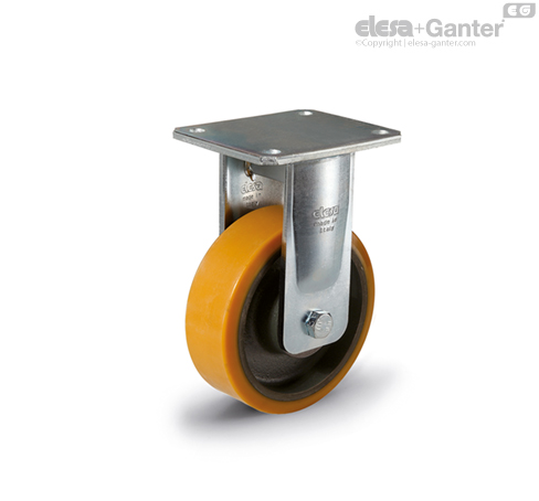 Primerno za težke industrijske aplikacije pod težkimi delovnimi pogoji, kot so bočni udarci in visoke hitrosti. Oblika poliuretanskih koles zagotavlja odlično drsnost in elastičnost ter visoko odpornost proti obrabi in trganju. Za dodatne informacije glejte RE.F4.