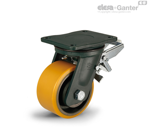 Primerno za težke industrijske aplikacije pod težkimi delovnimi pogoji, kot so bočni udarci in visoke hitrosti. Lito poliuretansko kolo zagotavlja odlične drsne lastnosti in elastičnost ter visoko odpornost proti obrabi in trganju. Za dodatne informacije glejte RE.F4.