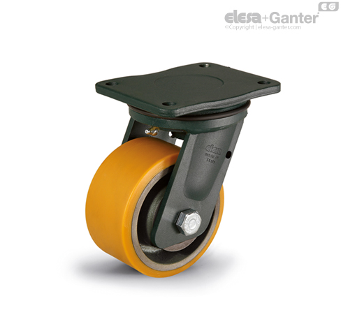 Primerno za težke industrijske aplikacije pod težkimi delovnimi pogoji, kot so bočni udarci in visoke hitrosti. Lito poliuretansko kolo zagotavlja odlične drsne lastnosti in elastičnost ter visoko odpornost proti obrabi in trganju. Za dodatne informacije glejte RE.F4.