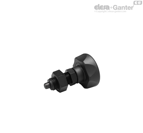 SUPER-technopolymer product based on ELESA technology, dimensions of the threaded body and plunger according to GN 612 standards as agreed with Otto Ganter GmbH Co. KG.